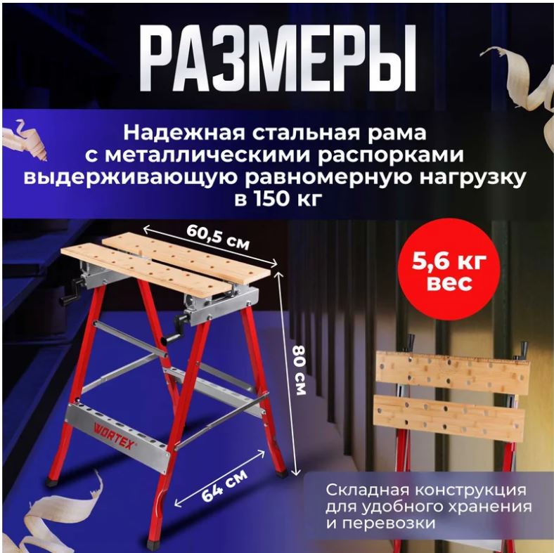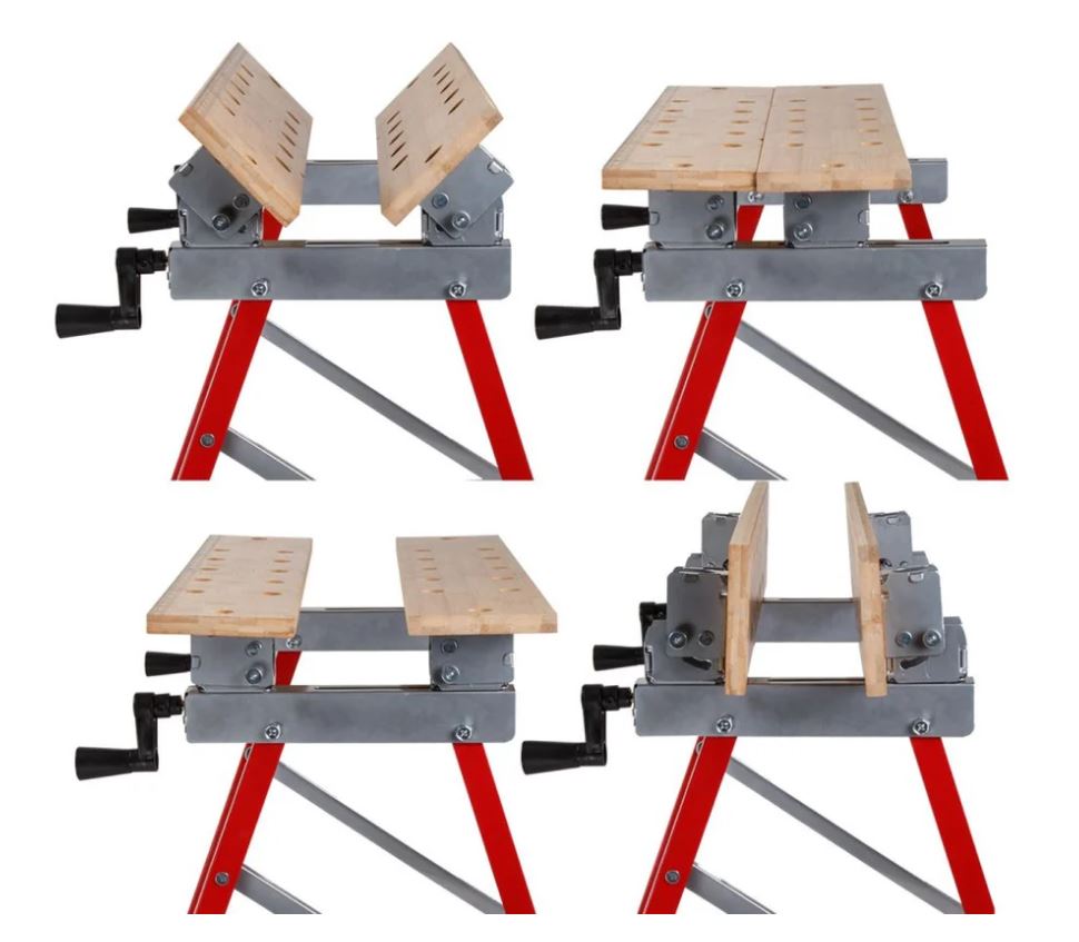 Многофункциональное устройство для облегчения обработки различных заготовок. Столешница состоит из двух частей, которые поворачиваются на фиксированные углы 45 и 90 градусов, что делает возможным фиксацию круглых заготовок, так же имеется функция тисков. Верстак легко хранить и перевозить, благодаря складной конструкции. Предусмотрены отверстия в столешнице для надежной фиксации заготовок. Возможно использовать для закрепления инструмента. Атмосферостойкое покрытие металлических частей. Имеет надежную металлическую конструкцию, выдерживающую равномерную нагрузку в 150 кг.