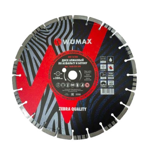WURTH Алмазный диск по асфальту/бетону 1A1RSS WUMAX ZEBRA DUO d350х12x3,2x24x25,4/20,0мм 1668235350