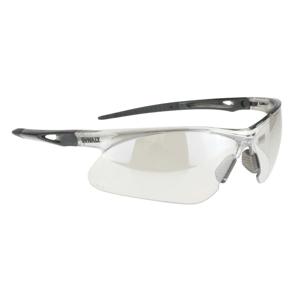 Защитные очки DEWALT, прозрачные, с черной оправой.
