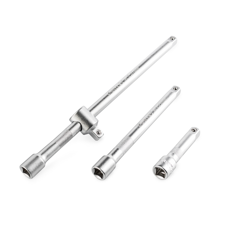 Двенадцатигранные торцевые головки и аксессуары изготовлены из износостойкой закаленной хромованадиевой стали.