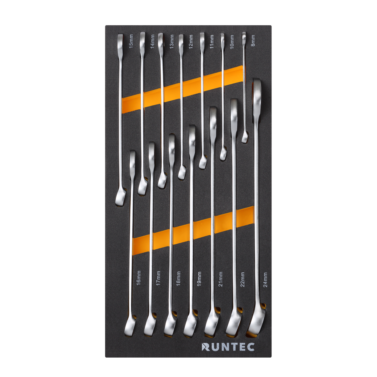 RT-WRE11 | Набор ключей комбинированных трещоточных RUNTEC CrV 8-24 мм в ложементе EVA, 11 предметов, 185x375x40 мм | |