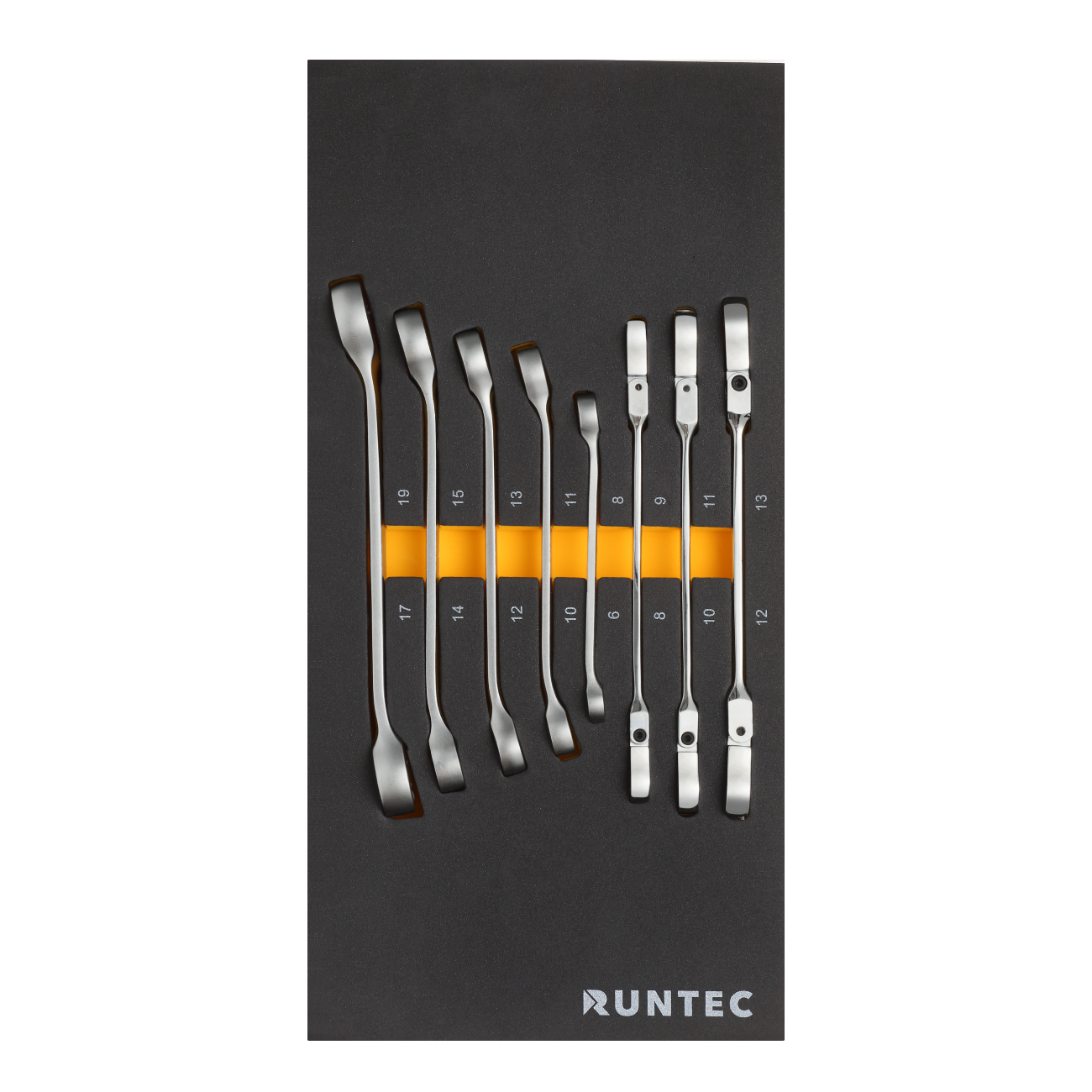 RT-WFE8 | Набор ключей разрезных стандартных и шарнирных RUNTEC 6-19 мм в ложементе EVA, 8 предметов, 185x375x40 мм | |