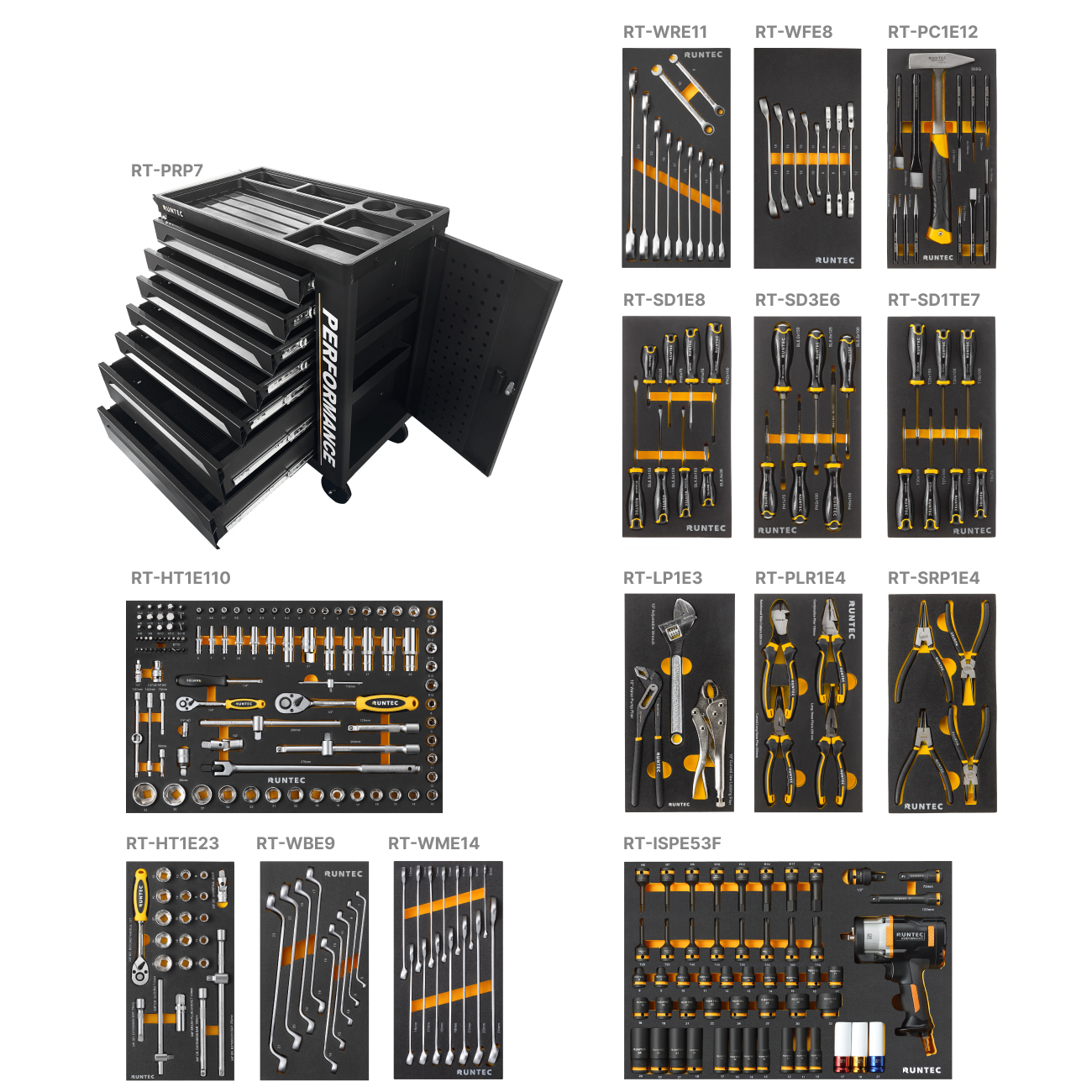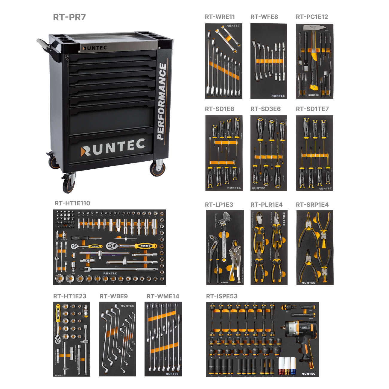 RT-PC1E12 | Набор ударно-рычажного инструмента RUNTEC в ложементе EVA, 12 предметов, 185x375x40 мм | |